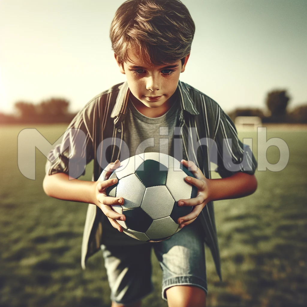 In an energetic scene radiating with youthful enthusiasm, a young boy exudes an infectious passion for sports. Dressed in a casual sports outfit that mirrors his vibrant spirit, he stands with unwavering confidence. The football, cradled in his eager hands, seems like an extension of his very being, a conduit for his boundless energy and dreams. The anticipation in his eyes and the determined curve of his lips hint at the thrilling moments to come on the field. It’s a snapshot of pure, unadulterated joy and a reminder of the magic that sports bring to our lives.