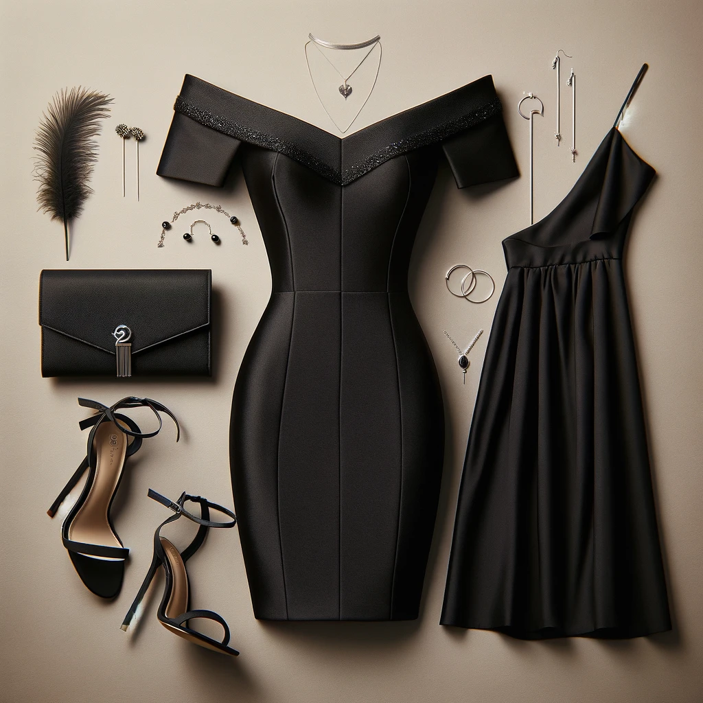 For a glamorous night out, envision an elegant fashion ensemble that captivates attention. A sleek, black off-the-shoulder cocktail dress steals the spotlight, boasting a slim fit that accentuates curves with sophistication. Paired with strappy heels and statement jewelry, this chic ensemble exudes confidence and allure, perfect for a memorable evening affair.