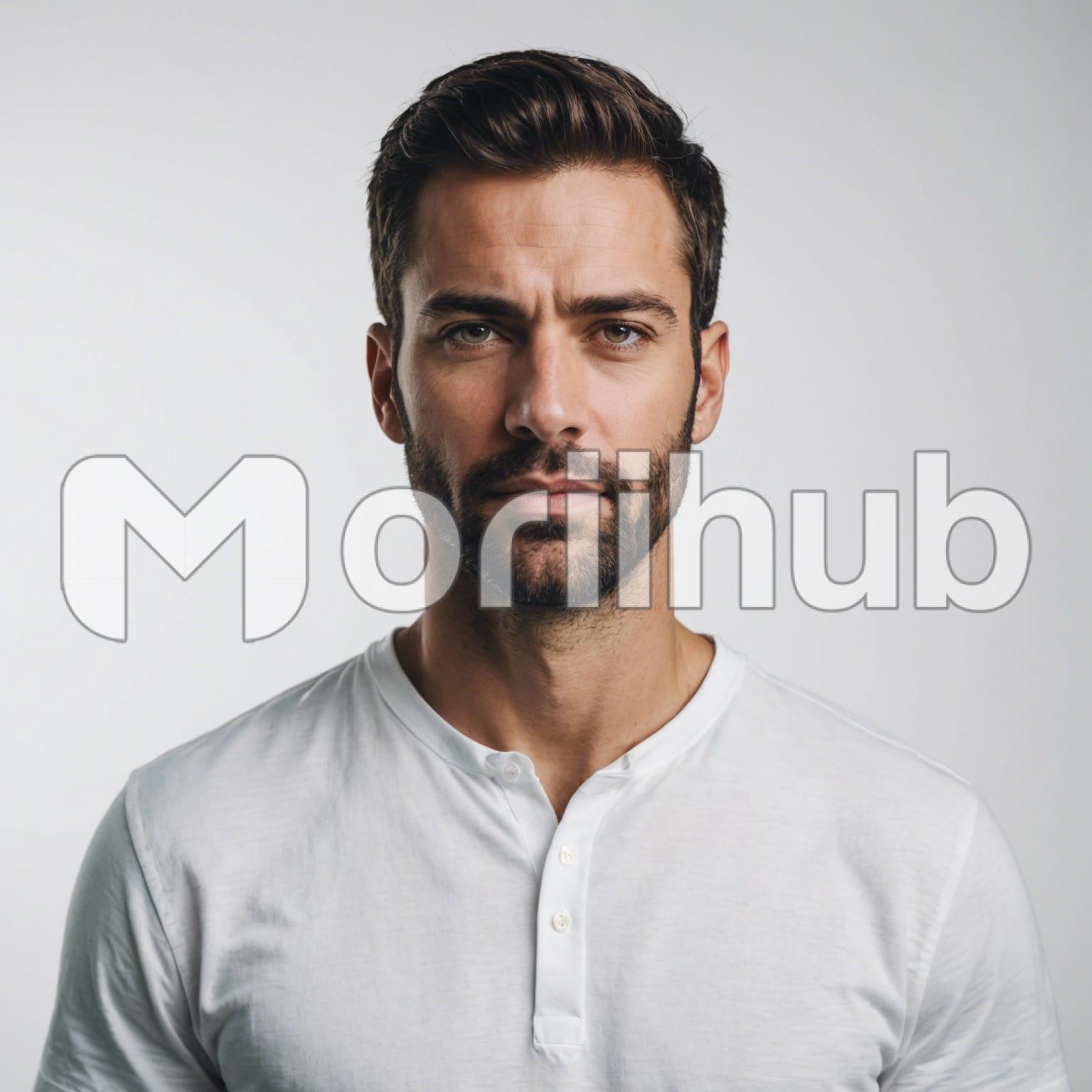 Amidst a backdrop of serene simplicity, a man gazes thoughtfully, his short beard framing a countenance marked by quiet contemplation. Against the plain background, his presence is accentuated, drawing attention to the subtle nuances of his expression. There’s a sense of depth in his eyes, hinting at untold stories and wisdom gained through experience. In this understated tableau, his demeanor exudes a quiet confidence, inviting observers to ponder the depth of his thoughts and the mysteries hidden within his gaze.