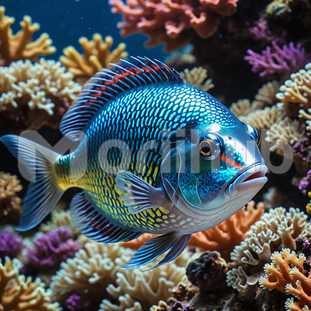 Within the tranquil reef, a fish glides with effortless grace, its scales shimmering in the gentle currents. Amidst the coral labyrinth, it maneuvers with precision, weaving between intricate formations. The subdued colors of the underwater world provide a backdrop for the fish’s elegant movements. In this serene aquatic realm, the fish epitomizes the harmony of life beneath the waves, a silent yet mesmerizing presence in the vibrant ecosystem.
