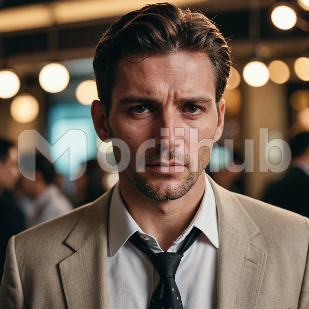 Dressed in a tailored suit, a man stands with unwavering resolve, his gaze fixed upon the horizon. Chin lifted, shoulders squared, he exudes confidence and determination. Amidst the urban bustle, he remains unfazed, his mind focused on distant aspirations. His expression betrays a mix of anticipation and contemplation, a silent testament to his unwavering pursuit of success. In this moment, he embodies the epitome of ambition, ready to conquer whatever challenges lie ahead.