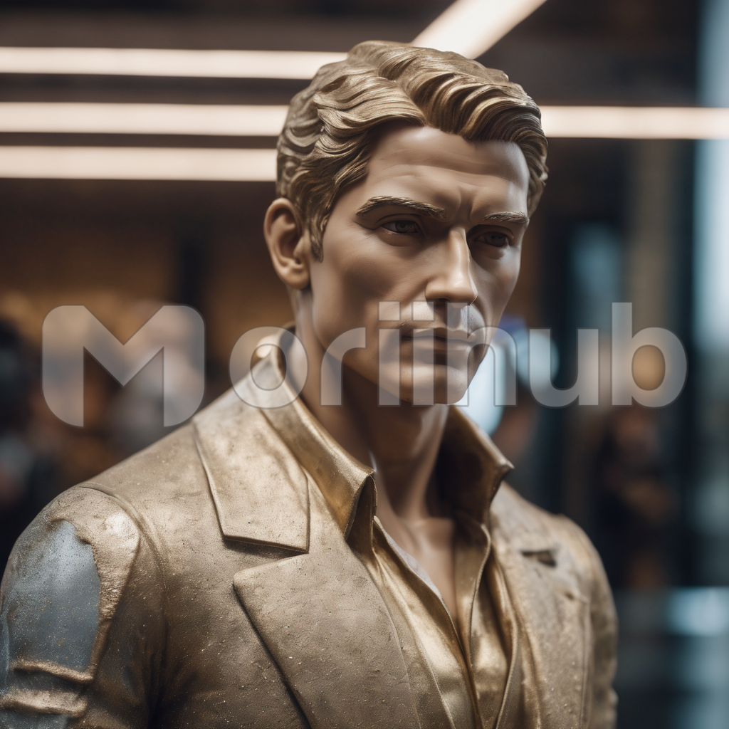 A stately statue portrays a man in a finely tailored suit, frozen in timeless elegance. His posture exudes confidence, with shoulders squared and chin held high. Adorned in polished attire, every detail of his attire speaks of refinement, from the crisp lines of his jacket to the delicate folds of his tie. Amidst the urban landscape, he stands as a symbol of sophistication and poise, a testament to enduring style and grace.