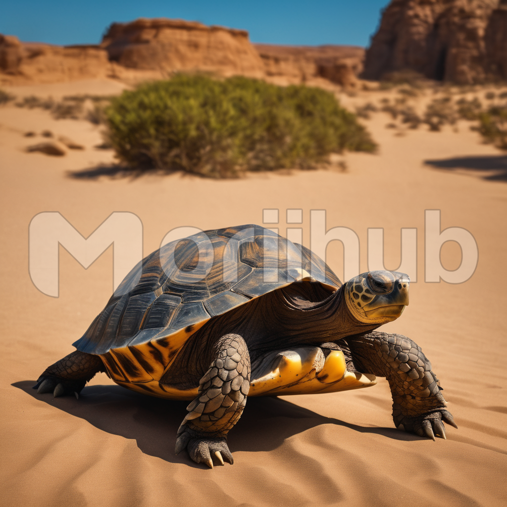 A wise and ancient tortoise, its age etched into the texture of its weathered shell, rests tranquilly on the warm, sun-drenched soil. Its sturdy legs and wrinkled skin speak of a lifetime of slow, deliberate journeys. The tortoise’s contemplative eyes peer out from beneath its heavy brow, embodying a deep connection to the earth and the wisdom of time. In this serene moment, the tortoise embodies patience, resilience, and the enduring beauty of the natural world.