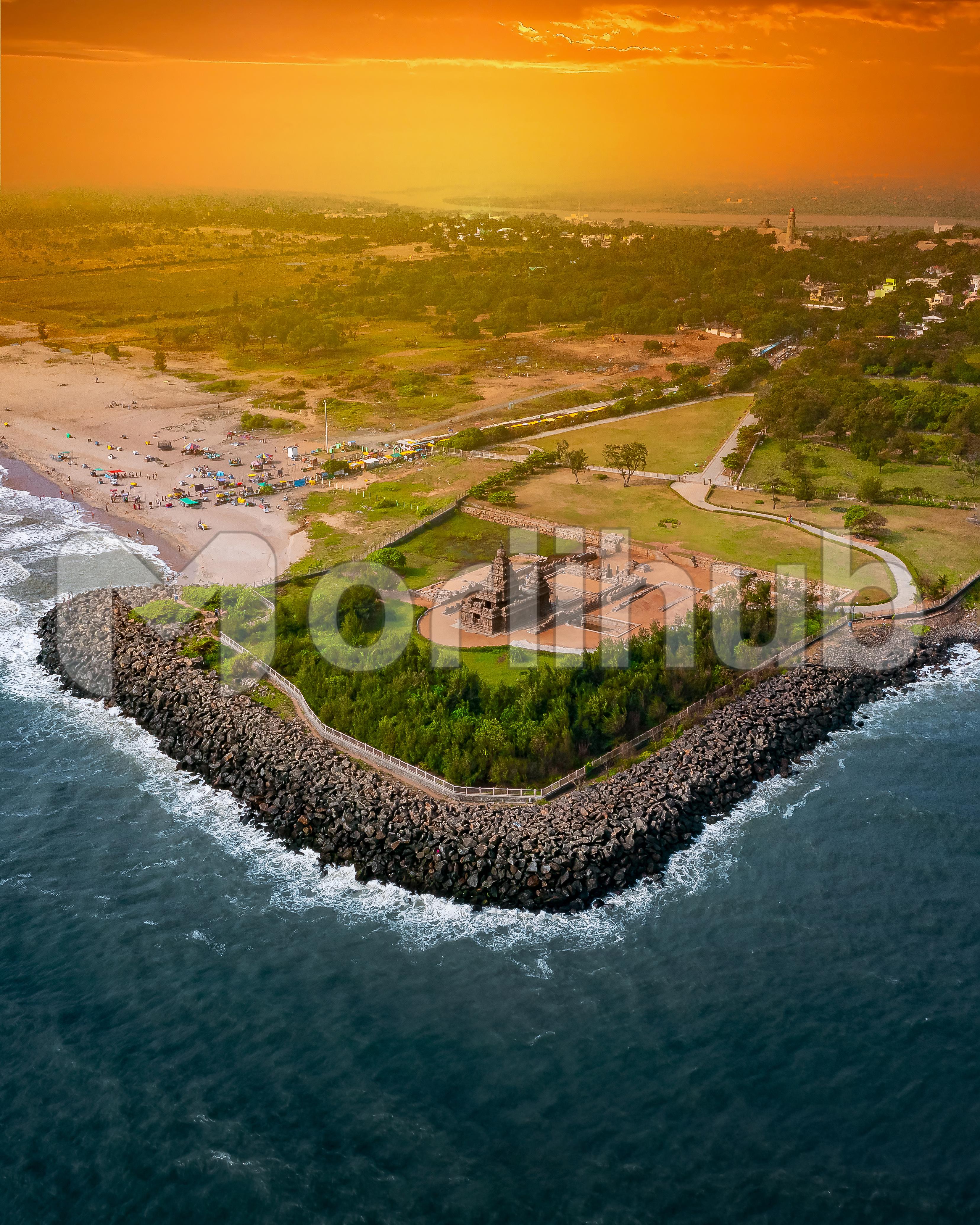 The Sunset View at Shore Temple in Mahabalipuram is a mesmerizing spectacle. As the sun descends, it bathes the ancient temple in a warm, golden glow, casting shadows on intricately carved sculptures. The horizon transforms into a canvas of vibrant hues, creating a tranquil and breathtaking scene by the sea.