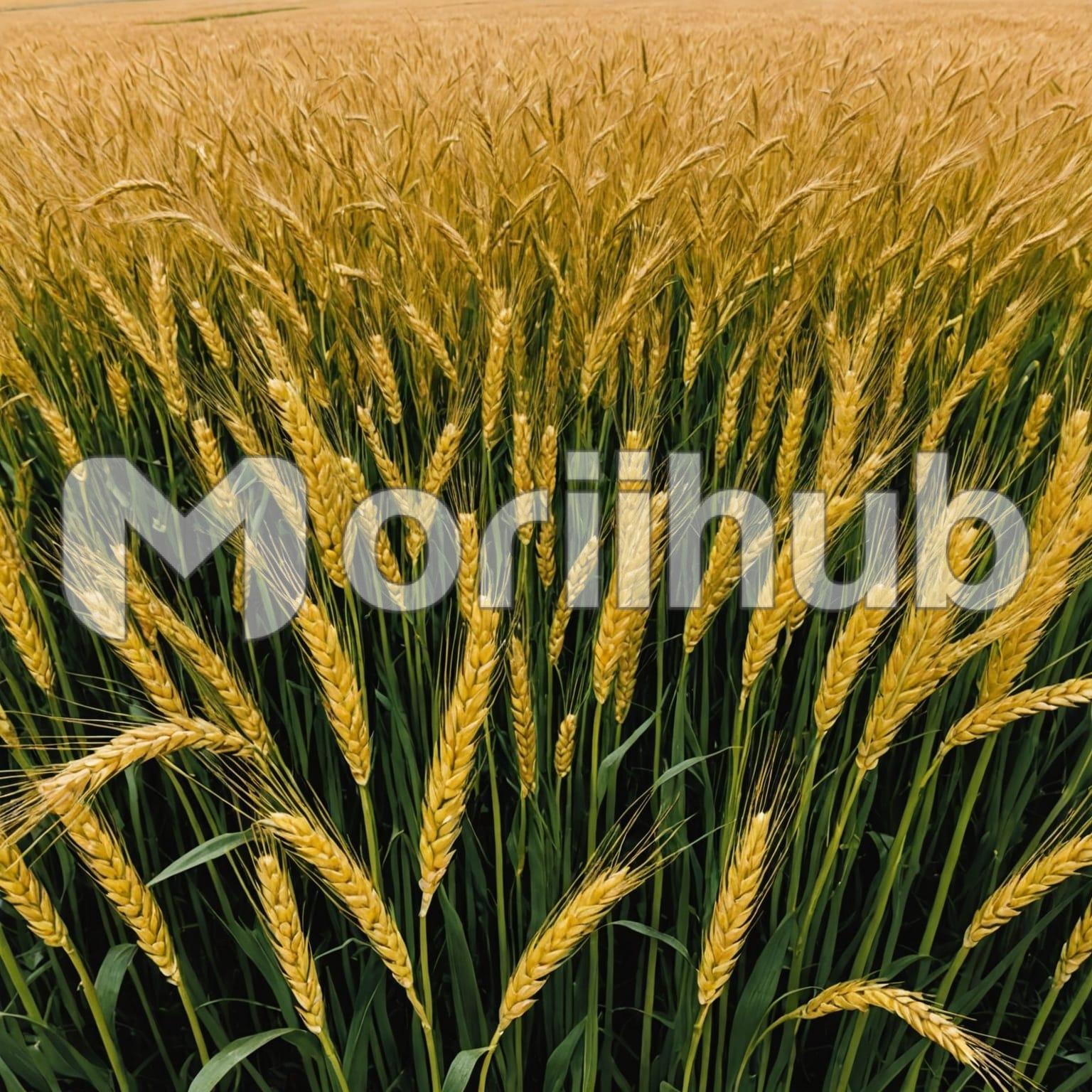 A field of wheat stretches out in golden waves, each stalk bending gently in the breeze. The wheat forms a vast, textured sea of amber that ripples with the wind, creating a rhythmic dance of color and movement. The field seems to go on forever, its boundless expanse meeting the horizon in a seamless blend of earth and sky. Underneath the sun’s warm light, the wheat glistens, capturing the essence of summer’s abundance and the promise of a rich harvest ahead.