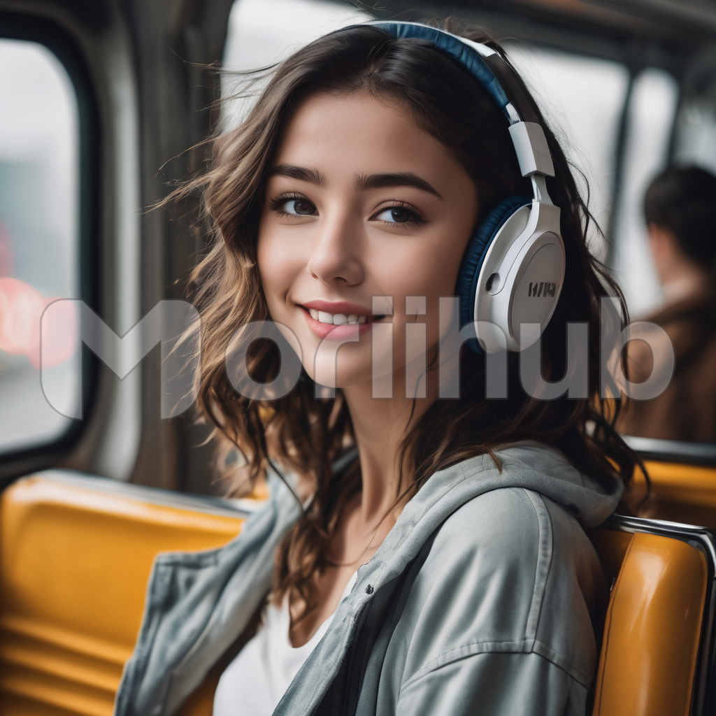 In the rhythmic sway of the bus, she sits, a vision of grace with headphones embracing her ears. Her presence, a tranquil oasis amidst the urban rush, exudes an aura of serenity. With closed eyes, she surrenders to the melodies, lost in her private symphony. Soft tendrils of hair caress her cheeks, framing a face adorned with a peaceful smile. Amidst the chaos, she remains a portrait of tranquil beauty, a fleeting muse in transit.