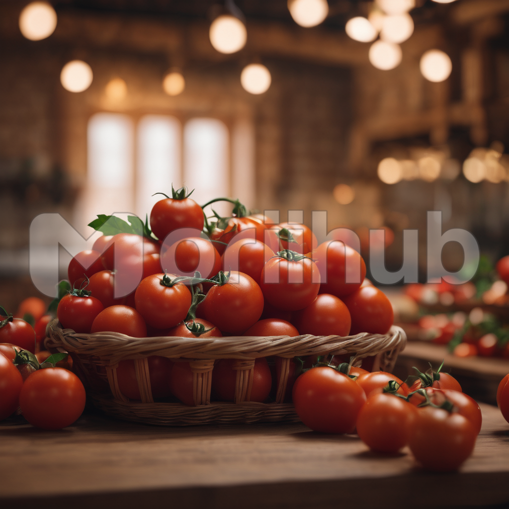 A rustic basket cradles plump, ripe tomatoes, a vibrant medley of crimson hues. Each tomato boasts a glossy sheen, hinting at its juicy succulence within. Their earthy aroma wafts from the basket, tantalizing the senses. Sun-kissed and firm to the touch, they promise a burst of flavor with every bite. Together, they form a bounty of freshness, a testament to nature’s abundance and the anticipation of culinary delights yet to unfold.