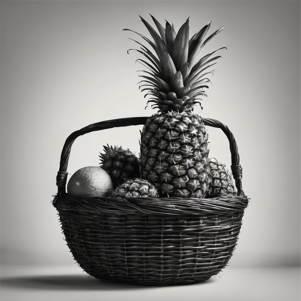 A rustic woven basket cradles a bountiful harvest of pineapples, their vibrant, scaly exteriors hinting at the sweet treasures within. The air carries a tropical fragrance, a promise of succulent delight. Their lush, golden bodies exude an inviting freshness, creating an alluring tableau of nature’s bounty. The basket brims with the essence of paradise, an invitation to savor the tropical flavors and escape into a world of tropical delight.