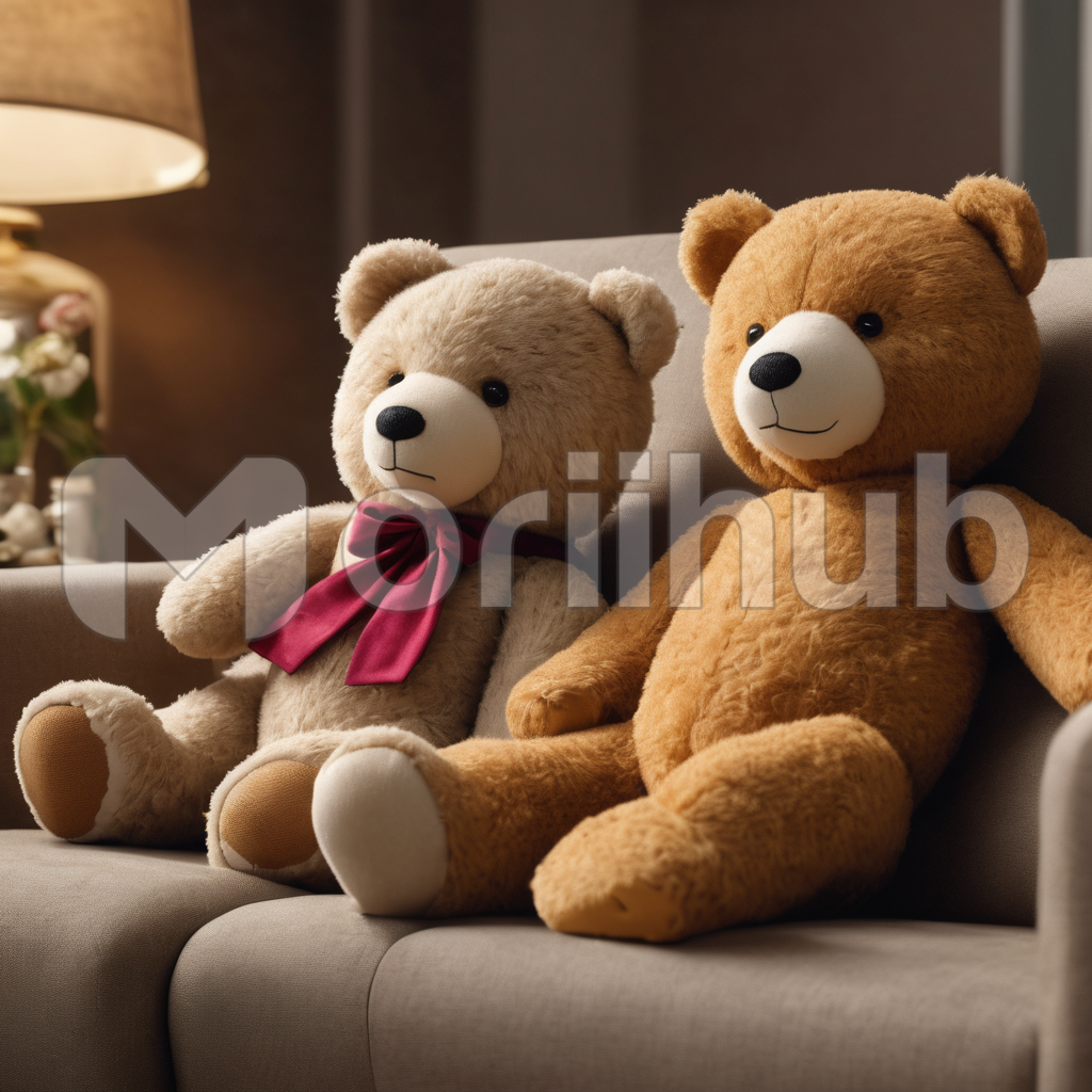 On a plush sofa, a collection of teddy bears forms an endearing tableau. Their cuddly presence invites comfort and nostalgia into the room. Each bear has its unique personality, with different colors, sizes, and expressions. Their button eyes and soft fur create a sense of warmth, evoking memories of childhood innocence and affection. As they sit together, the sofa becomes a haven of softness and love, a reminder of the simple joys that teddy bears bring to our lives.