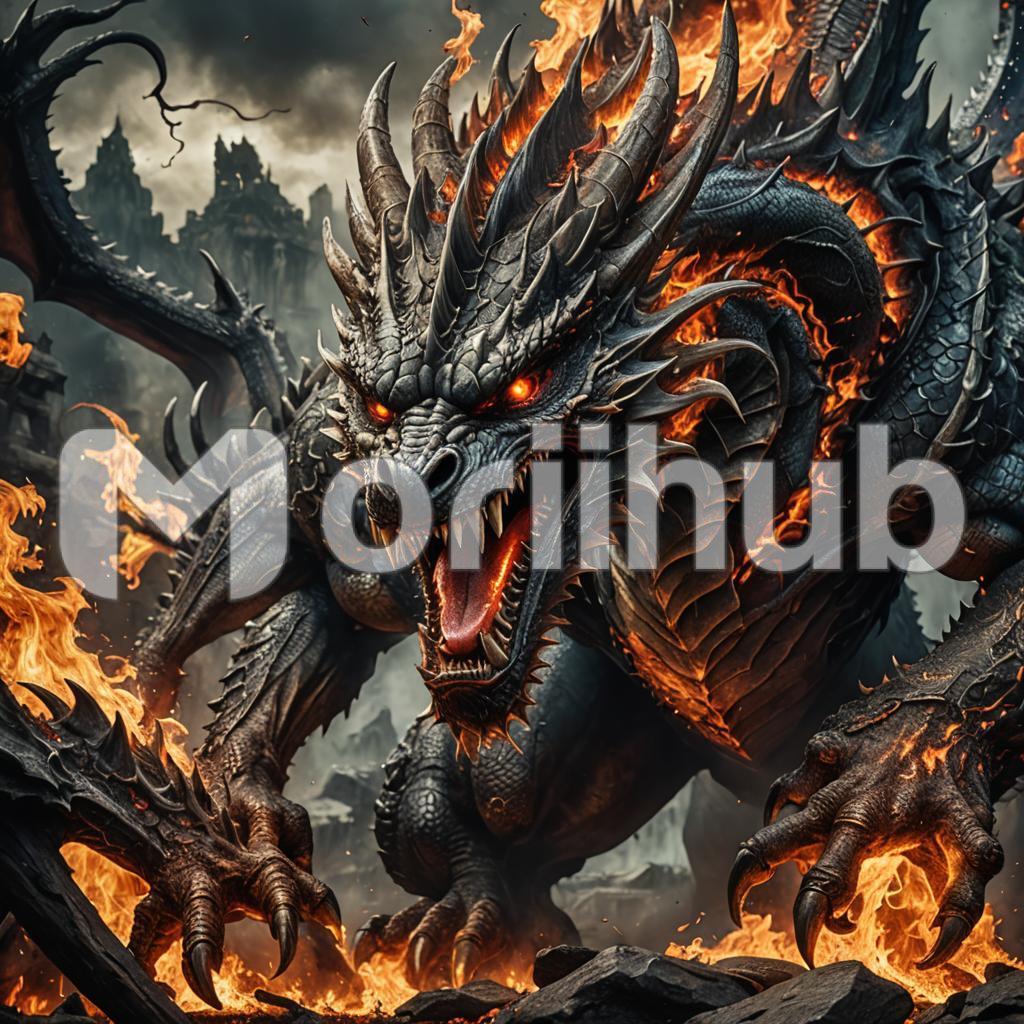The dragon, a fearsome beast, unleashes a torrent of fire from its gaping maw, illuminating the night with a fierce blaze. Its scales glimmer like molten metal, reflecting the inferno it creates. The ground trembles as flames surge forward, consuming everything in their path. The air crackles with heat and power, each roar of the dragon echoing with primal fury. This creature, both magnificent and terrifying, embodies the raw, untamed force of nature, leaving an unforgettable mark on the scorched earth and the awestruck eyes that witness its fiery wrath.