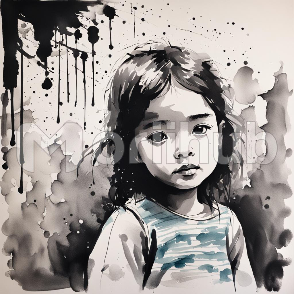 In fluid strokes of ink, a little girl comes to life, her head slightly tilted in curiosity. The graceful lines accentuate the innocence in her eyes, and the subtle tilt adds an air of playful charm. Shadows delicately trace the contours of her features, lending depth to the portrait. Through the artist’s brush, the essence of childhood is immortalized, inviting viewers to be captivated by the enchanting gaze of the girl with her head tilted in wonder.
