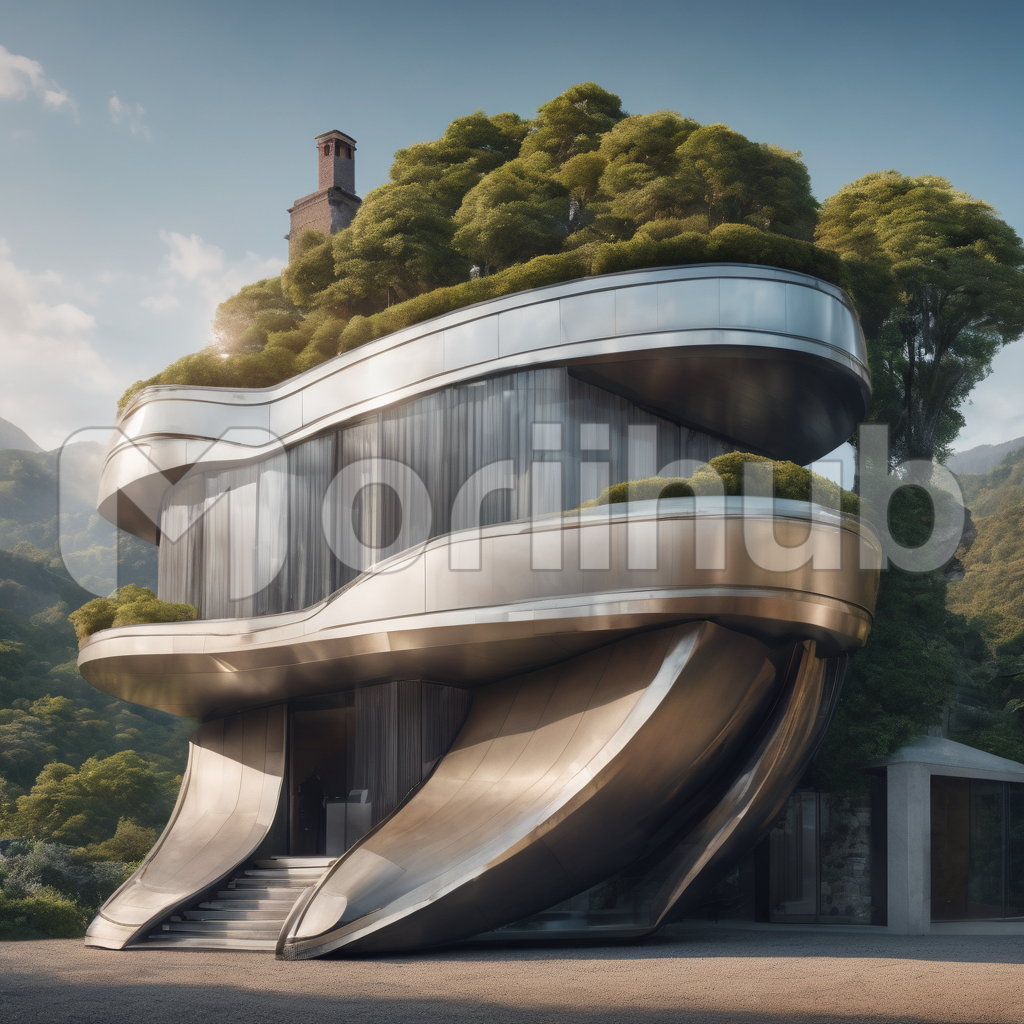 Perched like a jewel atop the cityscape, the futuristic house blends sleek architecture with a verdant oasis. Its sleek lines and shimmering surfaces reflect the sunlight, while lush greenery cascades from its rooftop, a vibrant testament to sustainable living. Solar panels adorn its surface, harnessing energy for its eco-conscious inhabitants. Amidst the urban hustle, this sanctuary stands as a beacon of harmony between technology and nature, a vision of the future realized.