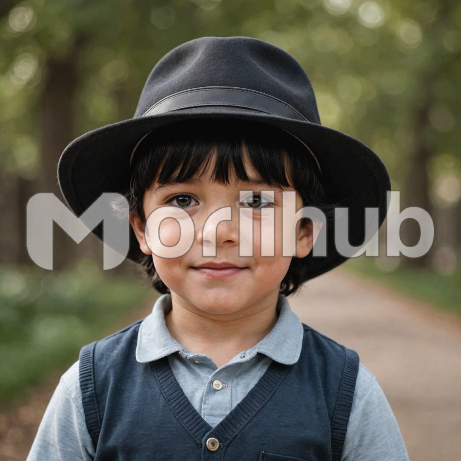 A cute little boy stands with a soft smile, donning an adorable hat that adds a touch of charm to his appearance. His eyes twinkle with curiosity and joy, reflecting a playful spirit. The hat accentuates his rosy cheeks and bright expression. Dressed in casual, comfortable clothes, he looks ready for a day of adventure. The background is simple, ensuring all attention is on his delightful presence. This image captures the essence of childhood innocence and the pure happiness that comes with it.