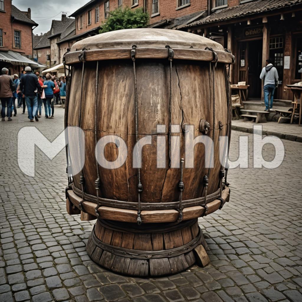 In the bustling village square, a huge drum stands as the focal point of community gatherings and celebrations. This massive instrument, crafted from ancient wood and adorned with intricate carvings, commands attention with its impressive size and detailed artistry. The drum’s surface is taut with animal hide, producing deep, resonant sounds that can be heard throughout the village. During festivals, the rhythmic beating of the drum sets the pace for traditional dances and songs, bringing everyone together in a harmonious celebration of their shared heritage.