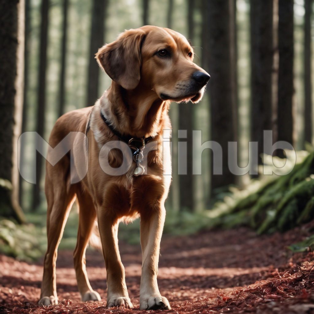 Among the emerald canopy of the woods, a hound roams with instinctive grace. Its russet fur blends seamlessly with the dappled sunlight filtering through the foliage. With keen senses attuned to the forest’s whispers, it navigates the moss-covered paths with silent determination. Ears alert, nostrils flaring, it follows ancient trails etched in the earth, embodying the essence of the wild. In this sylvan realm, the hound reigns as a silent sentinel of the woods.