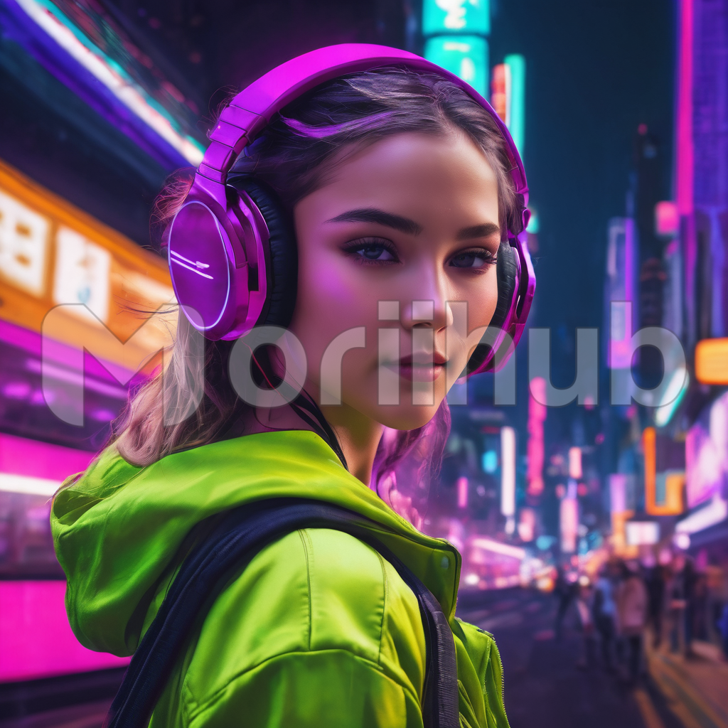 Amidst the urban bustle, a captivating presence graces the streets: a beautiful girl with headphones ensconcing her ears. She turns, revealing a fleeting glimpse of her graceful profile, hair swaying gently with her movement. Despite the clamor surrounding her, she appears serene, lost in the rhythm of her music. With each step, she adds a touch of elegance to the city’s chaos, a silent melody in the bustling symphony of life.