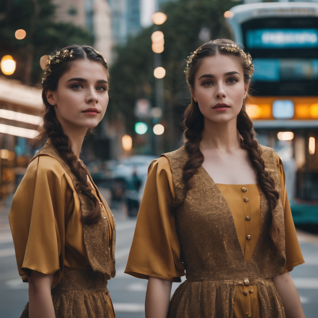 In perfect harmony, two sisters stand side by side on the bustling streets, their outfits coordinated in a charming display of sisterly solidarity. With smiles that mirror each other’s, they radiate a bond that transcends mere resemblance. Passersby can’t help but admire their synchronized elegance, a testament to the unbreakable connection shared between siblings. Against the backdrop of the urban landscape, their presence shines bright, a beacon of familial love and companionship.