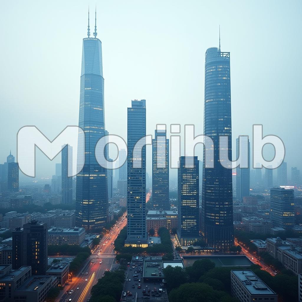 A bustling cityscape unfolds, dominated by towering skyscrapers that reach for the sky. Their sleek, glass facades create a striking array of light and shadow across the urban landscape. This dynamic scene captures the energy and diversity of city life, showcasing the impressive architecture that defines the skyline and creating an environment that pulses with potential and innovation, inviting exploration and discovery at every corner. The atmosphere is alive with the essence of urban living, emphasizing the grandeur and intricacy of the city’s architectural marvels.