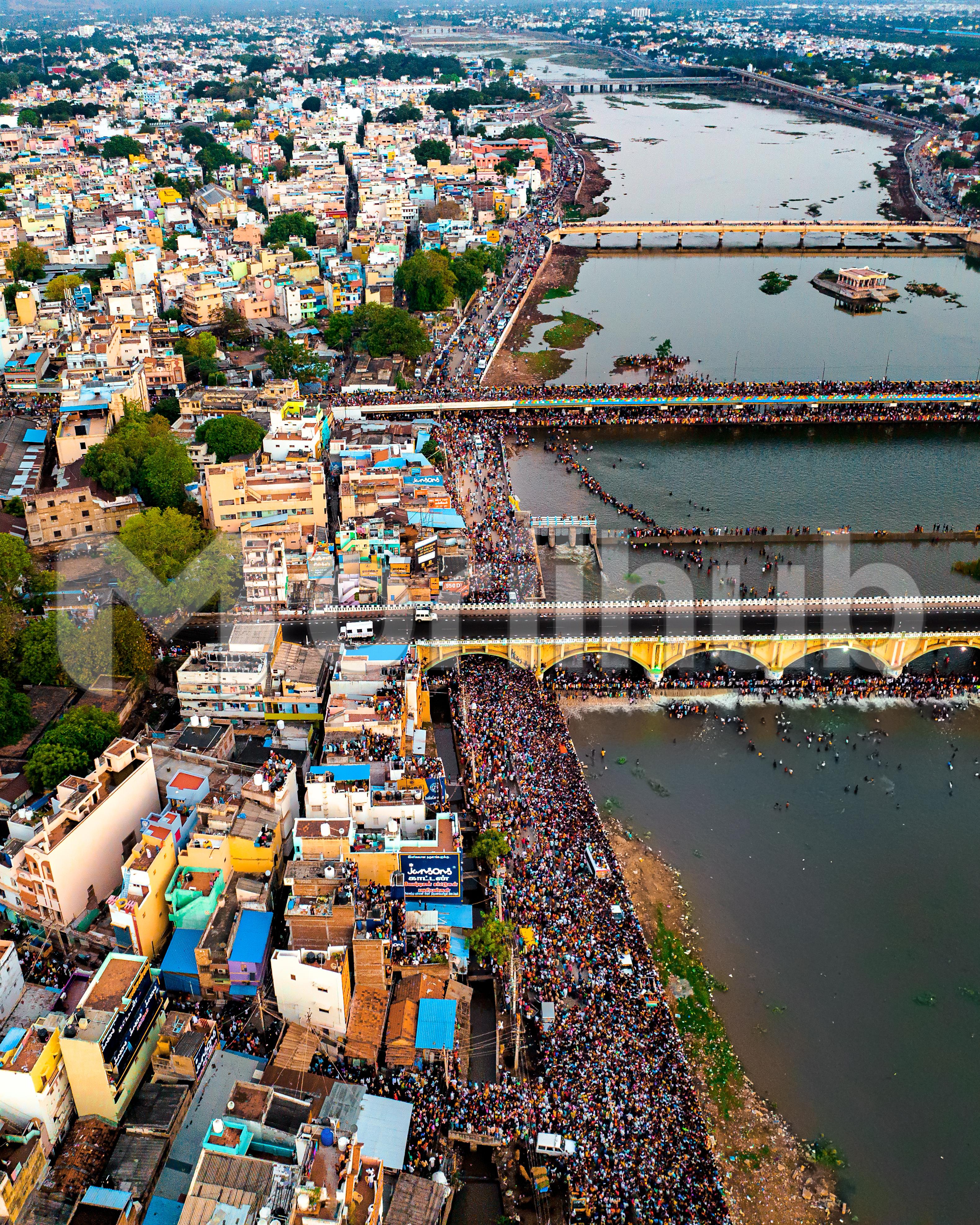The Vaigai River Bridge comes alive, adorned with a vibrant tapestry of people. A bustling scene unfolds as crowds traverse the structure, connecting communities. Against the backdrop of the flowing river, the bridge becomes a conduit of life, echoing the pulse of the city and fostering a sense of shared journey and connectivity.