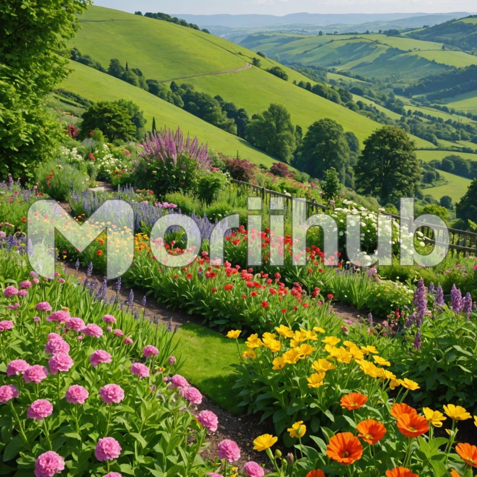 A field is alive with a vibrant array of flowers, their colors scattered like a painter’s palette across the landscape. The blooms sway gently in the breeze, adding a touch of movement to the scene. Surrounding the flowers, lush greenery blankets the land, blending seamlessly with the undulating hills that rise and fall in soft waves. The rolling terrain adds depth to the view, creating a harmonious backdrop to the colorful display. The entire setting feels serene and refreshing, a testament to nature’s beauty and variety.