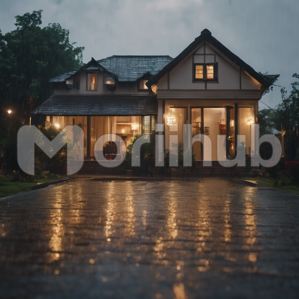 In the hush of the night, a solitary house stands as a beacon of warmth and shelter. Its windows aglow with the soft light from within, it exudes a cozy allure. Beyond the glass, the gentle cascade of raindrops paints a serene backdrop, lending a soothing rhythm to the night. The house, bathed in a tranquil ambiance, offers a haven from the storm, a sanctuary where one can find solace and peace amidst the gentle rainfall.