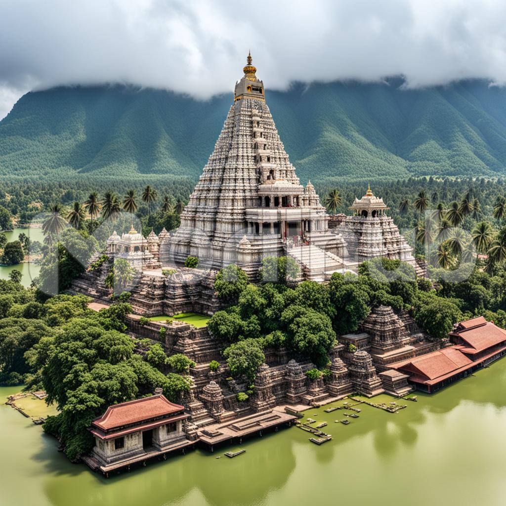 Amidst tranquil waters, the Indian temple stands as a divine masterpiece. Reflecting centuries of spiritual richness, its ornate architecture mirrors the vibrant culture. Surrounded by liquid serenity, the temple becomes a sacred island, where rituals blend with the ethereal beauty of the water, creating a harmonious sanctuary of reverence and tranquility.