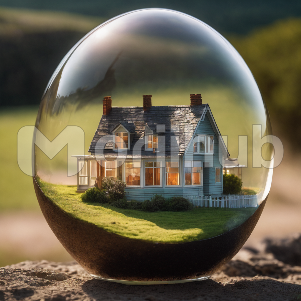 Nestled within a delicate orb, a miniature house captivates with its enchanting charm. Every detail, from the tiny windows to the intricate roof, is meticulously crafted, inviting wonder and curiosity. Bathed in soft light, the house exudes a cozy warmth, beckoning imagination to wander through its miniature halls. In this enchanting sphere, dreams take flight, and the ordinary transforms into a whimsical world of endless possibility, contained within the confines of glass.