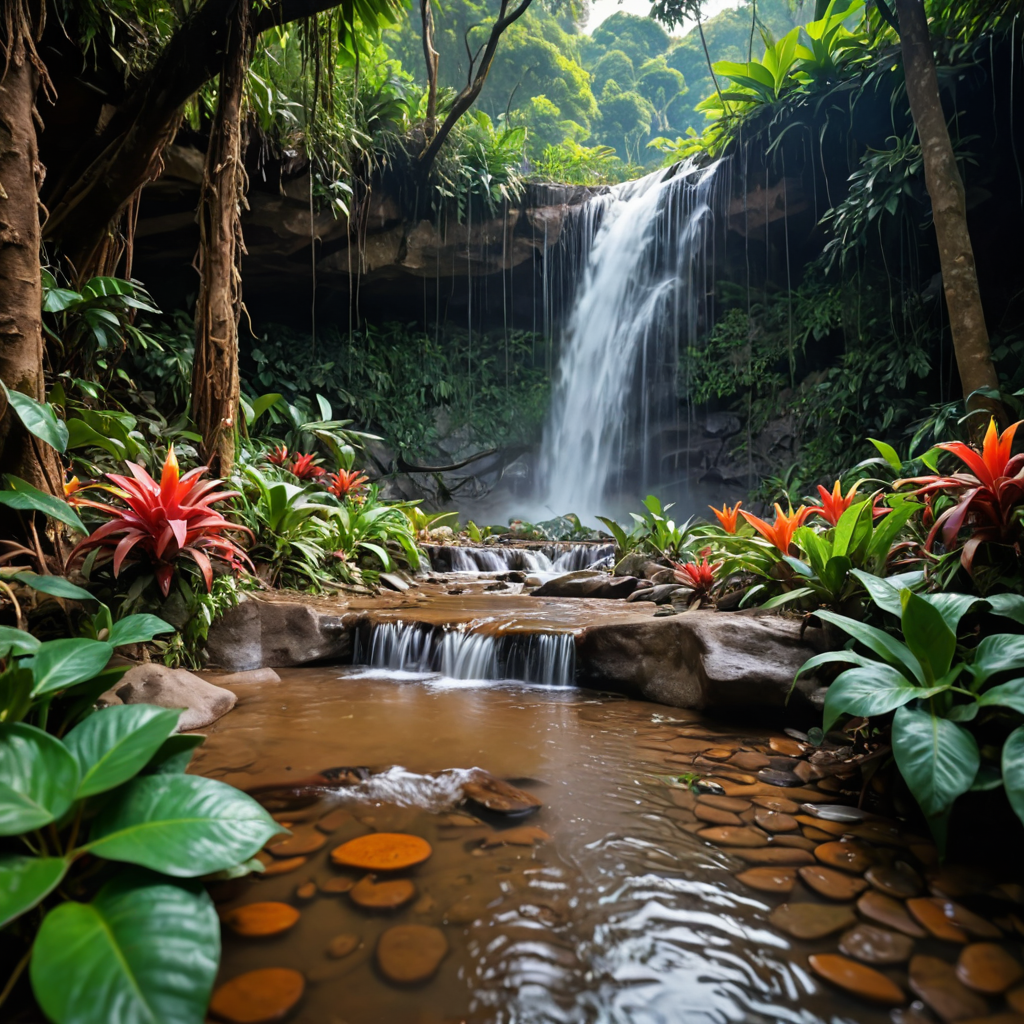 Nestled amidst lush foliage, a mesmerizing waterfall cascades gracefully, a spectacle of nature’s elegance. Its waters, crystalline and pure, descend with gentle fervor, kissing the rocks below. Verdant greenery envelops the scene, a tapestry of emerald hues that dances in harmony with the falling waters. The air is filled with the symphony of flowing streams and rustling leaves, offering a tranquil retreat for weary souls seeking solace in nature’s embrace.