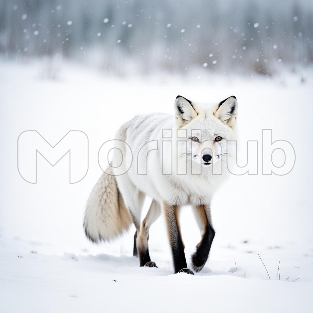 In the serene expanse of a snow-covered field, a white fox prowls with ethereal grace. Its pristine fur blends seamlessly with the winter landscape, and its eyes, an intense gaze of amber, fixate forward with focused intent. Each delicate step leaves a trail of paw prints in the crisp snow. The stark contrast of the fox against the snowy canvas creates a captivating scene, capturing the essence of the untamed beauty that defines the creature’s presence in the silent, wintry wilderness.