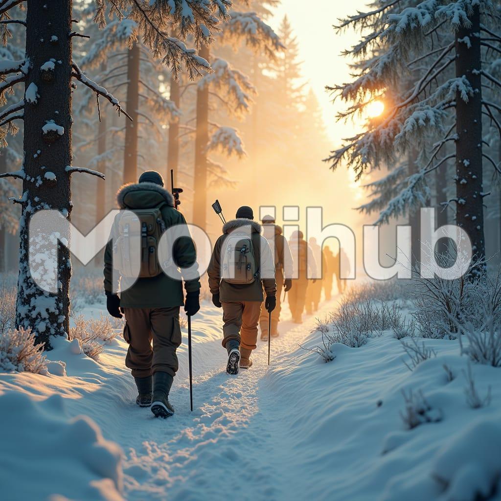 Travelers on a snow-covered pathway make their way through a winter wonderland, each step crunching softly underfoot as they navigate the serene landscape. The pathway winds through a dense forest, flanked by towering trees draped in layers of snow. The travelers, bundled in warm clothing, leave a trail of footprints behind them, their breath visible in the crisp, cold air. As they move forward, the world around them is hushed, with only the occasional sound of snow falling from branches breaking the silence. Their journey is one of quiet reflection and connection with nature, each step bringing them deeper into the heart of the winter landscape. The beauty of the snow-covered path, combined with the stillness of the forest, creates a tranquil and almost magical experience, where the travelers are both challenged and embraced by the natural world.