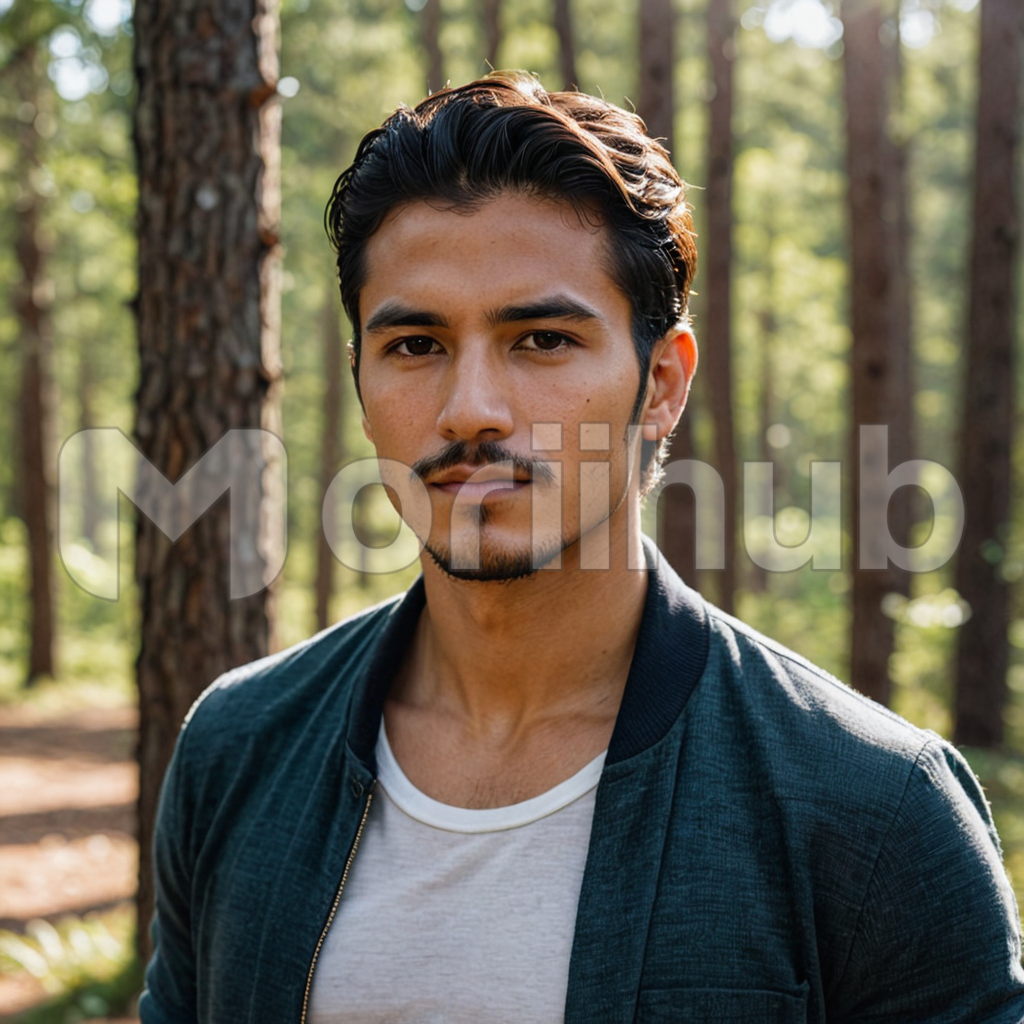 Amidst the serene woodland, a man stands, his gaze fixed ahead with quiet resolve. Towering trees form a majestic backdrop, their leafy branches reaching toward the sky. Sunlight filters through the canopy, casting dappled shadows on the forest floor. With an air of contemplation, the man seems absorbed in thought, as if searching for answers amidst the tranquil beauty of nature’s embrace. His presence resonates with a sense of harmony and connection to the surrounding wilderness.